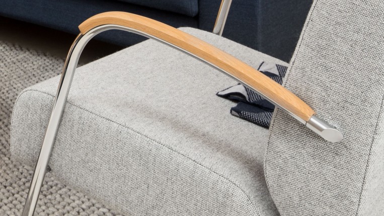 The F096 seat can be made with or without wooden armrests. W 61 x D 71 cm | seat height 42 cm