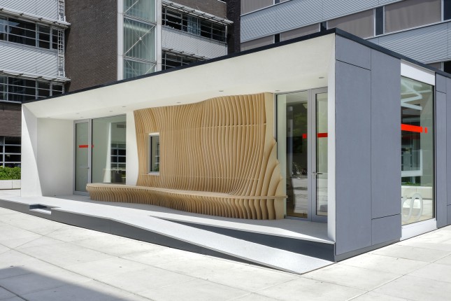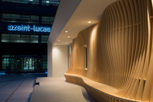 Built on the square at the main entrance, the brand-new pavilion of the Ghent-based general hospital AZ Sint-Lucas fully focuses on innovation. Patients, doctors, fellow workers and other people interested can cast a glance at the innovative developments and the model room of the future.