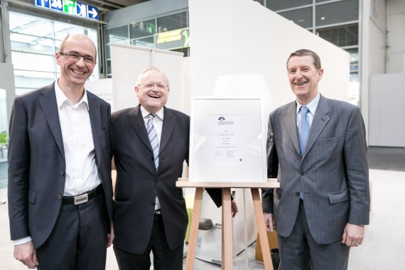 (Op de foto ziet u van links naar rechts: Michael Schlencke en Jan Vanhecke van Prof Projects en Renier Nijskens, de Belgische ambassadeur in Duitsland).