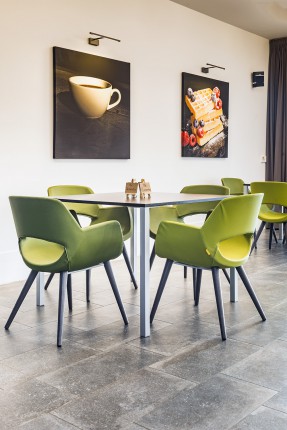 Het woonzorgcentrum wil voor al zijn bewoners een thuishaven met klasse zijn: zo is er een prachtige Franse tuin, een gezellig terras, twee restaurants en een loungebar. De gloednieuwe uitbreiding omvat 20 nieuwe assistentiewoningen. Haelvoet voorzag de nieuwe ruimtes van toepasselijk meubilair.